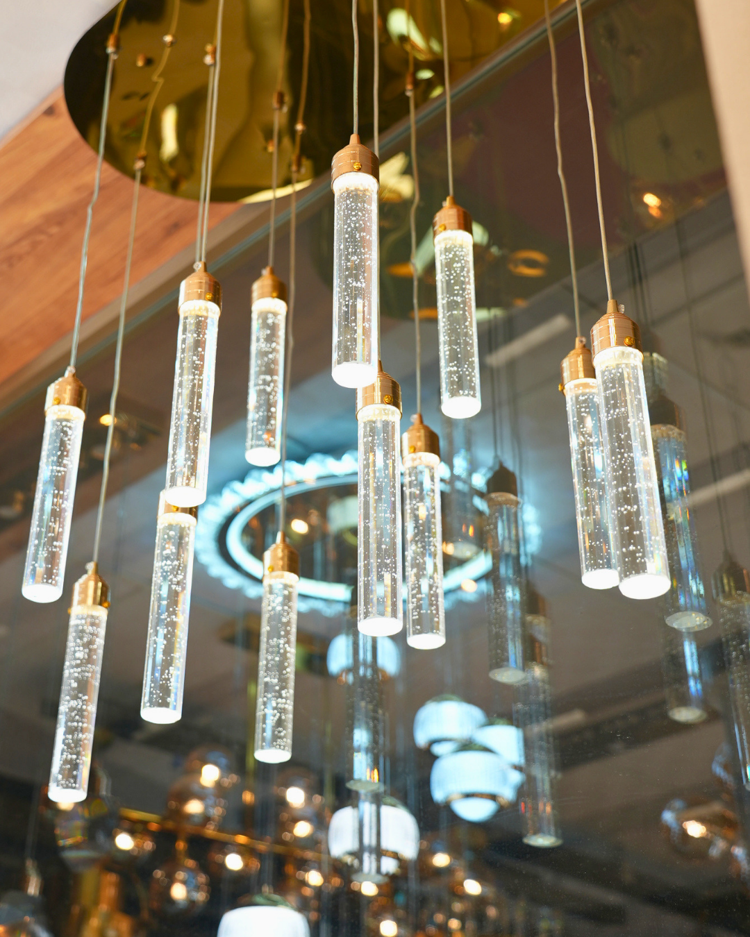 Özel Tasarım Avizeler: Salon ve ortak alanlarda odak noktası oluşturan, yüksek kaliteli kristal ve modern materyallerden üretilen avize uygulamaları.